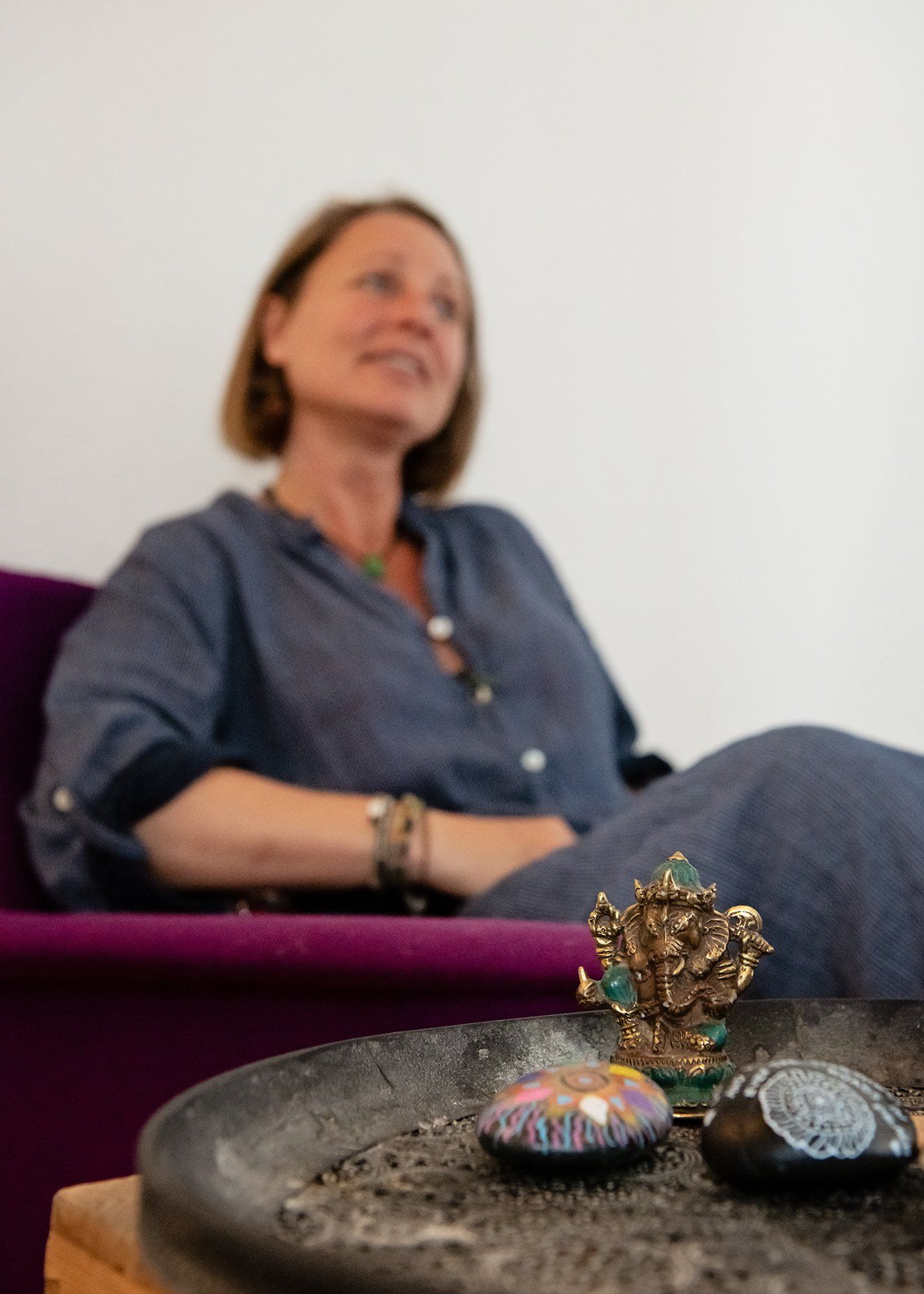 Terapien tager afsæt i et holistisk menneskesyn. Det betyder, at jeg ser mennesket som psykisk, fysisk, relationelt, spirituelt og energetisk forbundet såvel indadtil som udadtil i verden. Et menneskesyn der tilgodeser og forbinder såvel vestens som østens filosofi. Alle menneskelige lag påvirker hinanden i en evig proces, så hvis ”noget” rør sig det ene sted vil det højst sandsynligt lade sig mærke de andre steder – som en dråbe laver ringe i vandet. Terapien tager derfor afsæt lige der, hvor det lader sig mærke ved dig, og den er dynamisk, kreativ og kropsligt orienteret. Jeg gør brug af en del redskaber for at favne HELE dig, og det du har brug for.